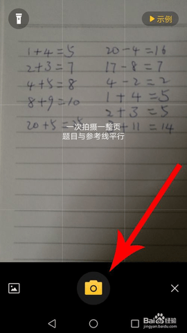 4.打开拍照界面以后对准习题,然后点击拍摄按钮