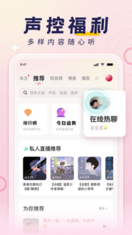 情感FM,有低沉沙哑、温柔亲切的男声,有知性治愈、酥软萌萌的女声,在线秒连线,在线倾听烦恼、排忧解闷。