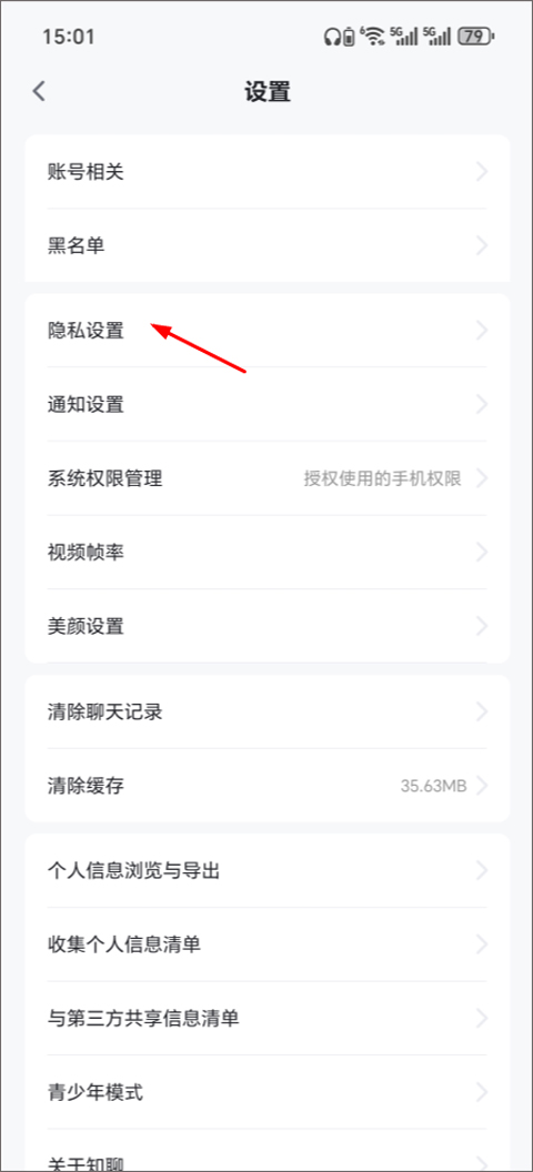 3、进入设置后,点击“隐私设置”;