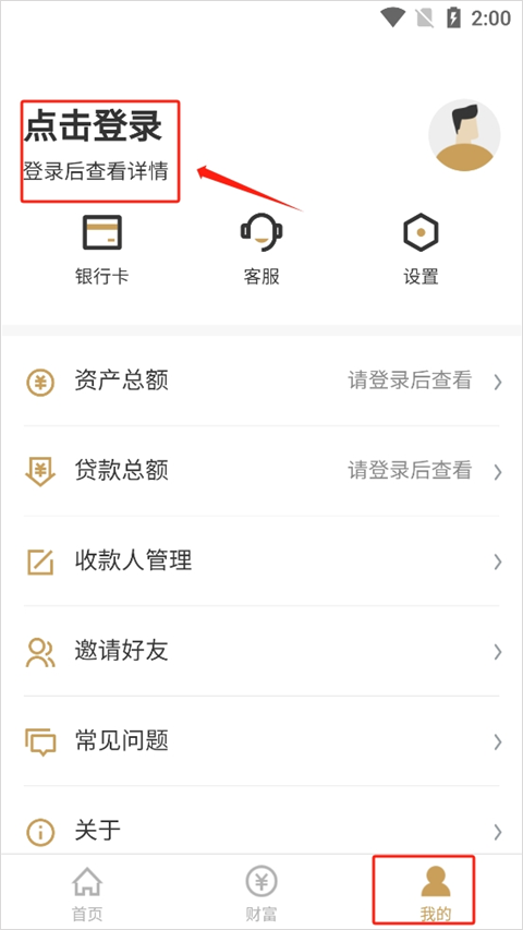 1、用户安装完成该app之后,在“我的”中点击登录。