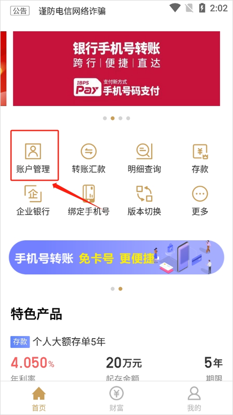 4、先选择“账户管理”绑定银行卡,绑定后就能查询余额了。