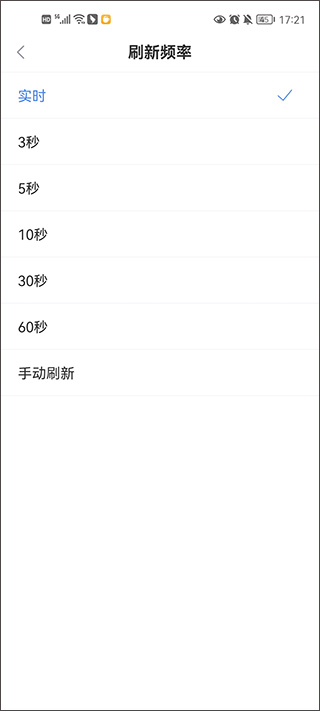 3、在弹出“刷新时间”窗口中,我们可以看到默认的刷新时间是实时的。