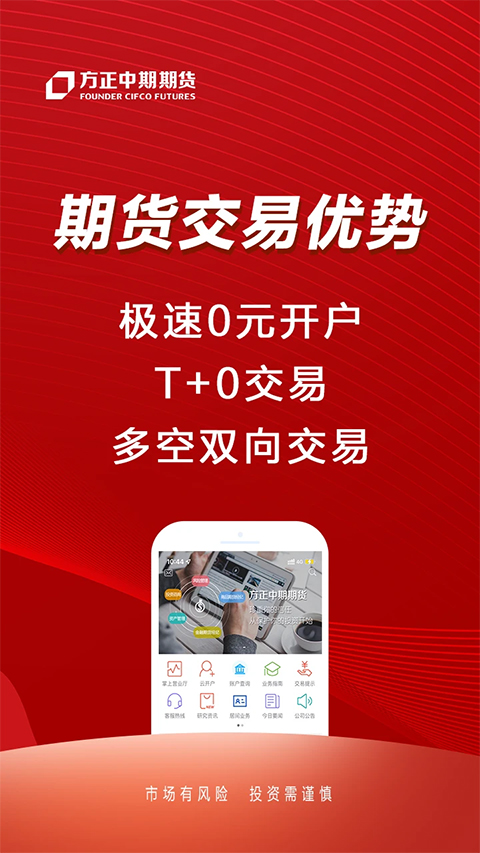 方正中期方小期app是一款由方正中期期货有限公司推出的一款手机期货交易软件,软件的功能十分强大,为用户提供了网上开户、网上行情、期货委托交易、银期转账等多种功能,在这里用户可以随时了解期货行情,方便各位投资者在线进行期货账户的开户,还能够查看最新的市场交易行情,掌握市场的动向和走势,在这里可以随时随地的掌握股票的动态行情,为自己的投资决策提供最权威、精准的信息,另外,这款应用还为投资者提供了一站式的移动理财服务,方便用户轻松管理自己的投资组合,有需要的朋友赶快来下载体验吧!!!