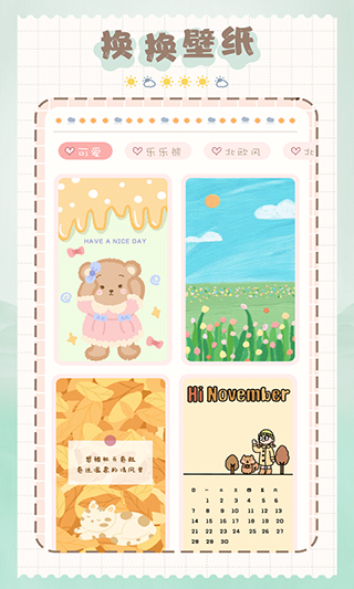 2、可以随时找到自己需要的壁纸,还可以DIY贴图,也算是很漂亮很可爱了。