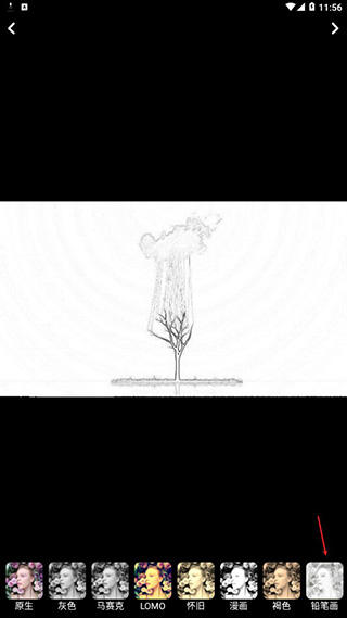 4、小编这个选择的是铅笔画的滤镜,超有艺术美,当然用户可以根据个人喜欢选择滤镜种类;