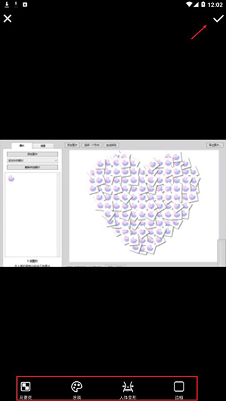 5、另外,点击主界面的实用工具,可以对图片进行马赛克、涂鸦、人体变形、边框的添加,编辑完成后,可以点击右上角的√保存;