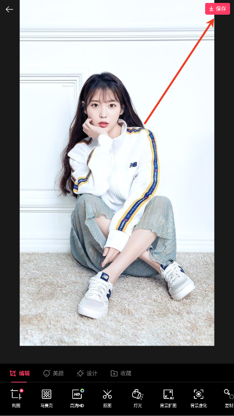 5、编辑完成后,点击右上角保存按钮,选择分辨率并保存图片。
