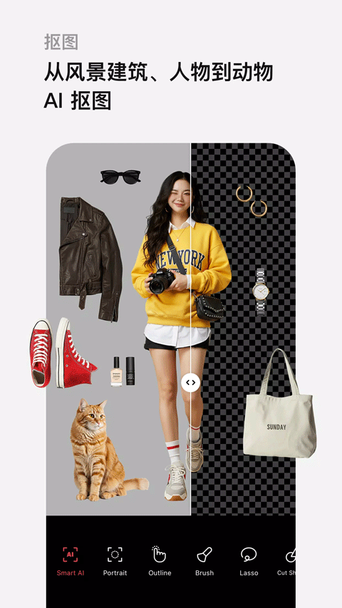 ・ 智能AI裁剪:从人物、事物到动物,精确裁剪