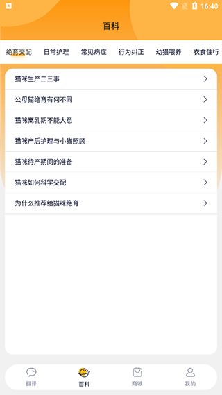 在这里可以了解猫咪的知识,包括了衣食住行,日常护理,常见病症等多个方面。