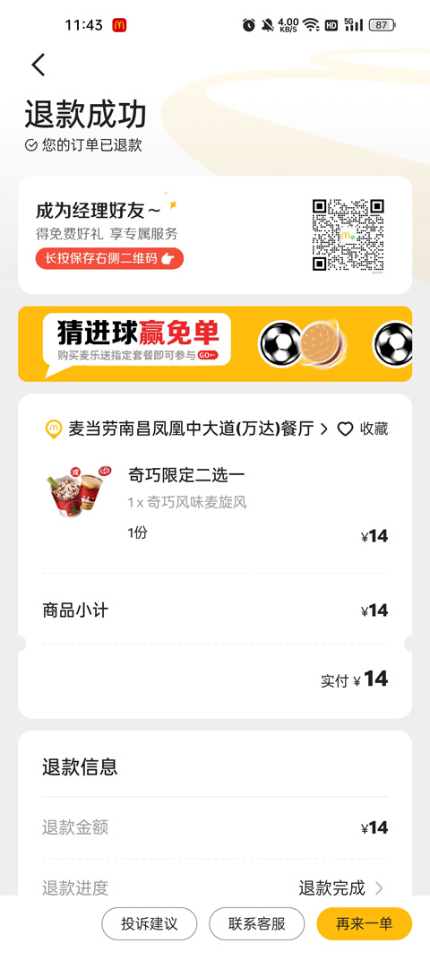 2、升级麦乐送服务,足不出户就能品尝美味。