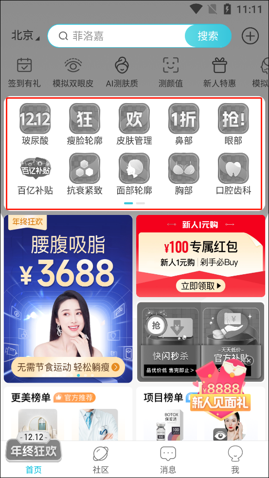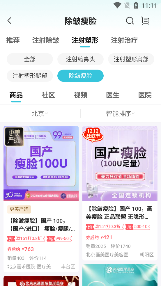 3、在商城中可看到提供了玻尿酸、气度管理、除皱瘦脸等服务;
