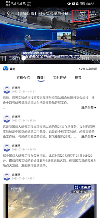 一、打开app,选择你要观看直播,在直播直播界面中点击tv小图标