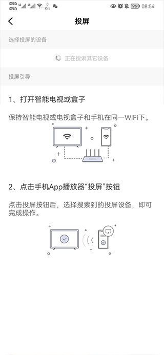 二、将手机与电视连接同一个WiFi后,等待手机搜索投屏设备即可完成投屏