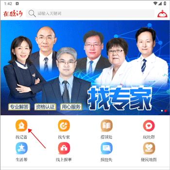 1、打开软件后,在“帮帮”界面,点击“找记者”