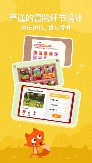 1、严谨的冒险环节设计,边玩边练,稳步提升;