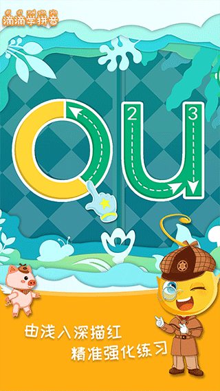 滴滴学拼音app是根据教育部《3-6岁儿童学习与发展指南》而设计的一款针对幼小衔接阶段的拼音学习应用,软件全面配合小学语文教学大纲,尊重小朋友的学习规律,将宝贝需要掌握的单韵母、复韵母、声母等融入到精心设计的侦探故事之中,在轻松有趣的故事和游戏中自然掌握拼音。同时滴滴学拼音软件不仅可以帮助小孩子八周学会汉语拼音的早教软件,能够在趣味游戏中探索学习,而且还可以通过对对歌,配以古诗的韵律,多样化的形式让学习更高效,让宝贝在学习中自然运用拼音、认知汉字,感受文化之美,有需要的用户快来下载吧!