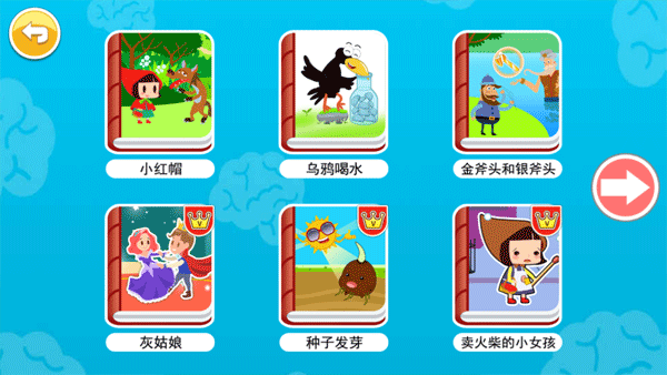 中英文对照绘本,通过绘本,锻炼听力、积累词汇、学习句型;精美的图片+动画+纯正发音;绘本涵盖童话故事、寓言故事等,例如:白雪公主、小红帽、国王的新衣等。