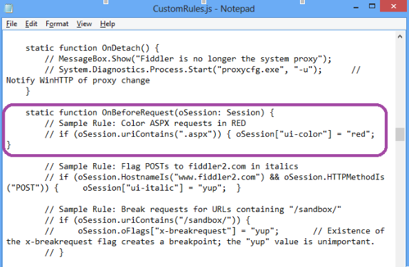 Fiddler支持通过Jscript方式扩展功能,比如自动通过脚本对请求及回复进行处理。具体的实例可以参考fiddler提供的实例代码。