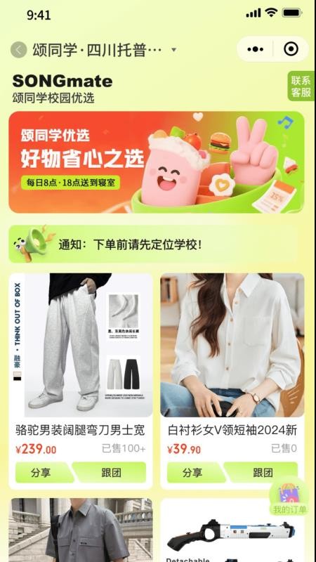 颂同学app是一款专门为大学生提供线上购物消费服务的软件,软件中涵盖有自营商城、校园外卖、寝室零食店、周边娱乐、代取餐/快递等多种功能可供用户任意使用,满足大学生多元化的服务需求,还可以一键开通会员享受更多会员尊享的权益服务,让用户可以省钱优惠的在线购物消费,还可以参与各种拼团活动,以最实惠的价格轻松拼团购物,将校园附近的美食商店个性化推荐,让大学生可以轻松查找附近美食下单点餐,为大学生带来更加智慧便捷的校园生活体验,让用户在线购物消费更加轻松方便,有需要的用户就快来下载颂同学官网版使用吧!