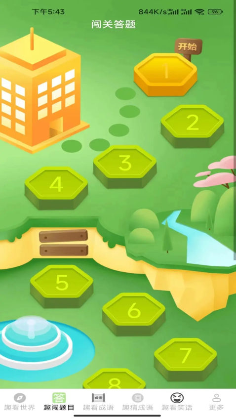 在趣闯题目功能中可以参与闯关答题挑战,对每个关卡的题目进行在线答题。