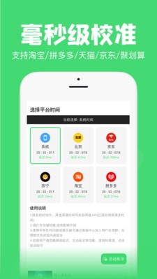 包含北京时间、京东时间、苏宁易购时间、淘宝时间、拼多多时间多个渠道服务器时间校准,让你的整点抢购更精确!