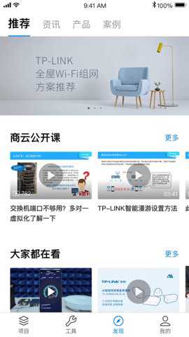 4、 TP-link商云APP是一款功能丰富的无线路由器手机配套应用,它不仅可以帮助用户实现远程查看网络拓扑结构的功能,还集成了售前自主组网和项目远程管理功能。