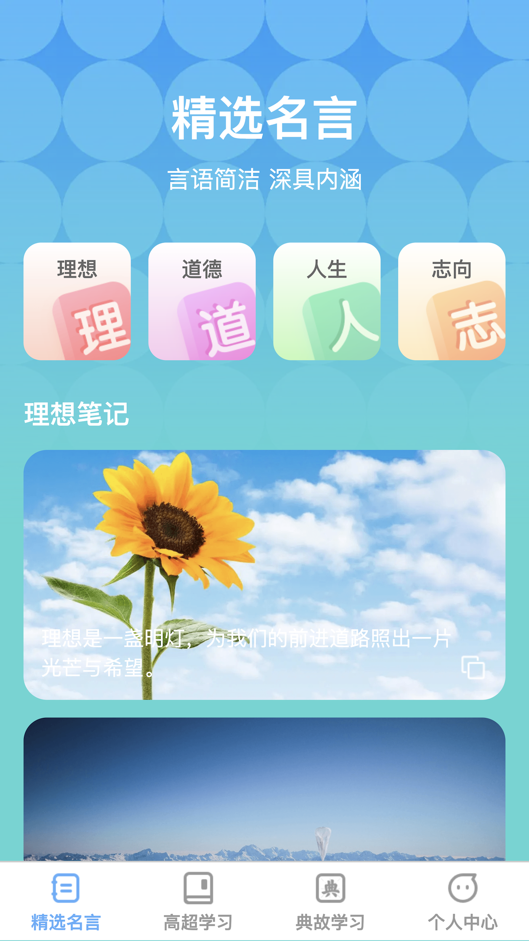 内置了名言分类,可以按类型查找优质素材;理想笔记功能让你随时记录阅读心得并统一管理;复制工具能一键保存喜欢的名言,方便后续写作或分享。学习板块主要分为数学运算和典故两大主题,数学部分包含各种计算题目来掌握解答技巧,典故部分则提供了大量中华文化资源,点击详情页还能阅读完整文章。这个小帮手还支持阶段性能力提升,比如数学板块会根据你的答题水平动态调整题目难度,确保学习效果最大化。