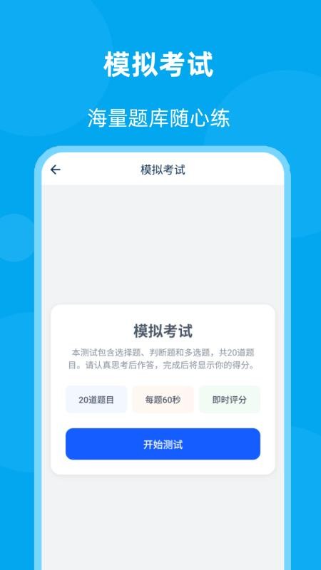 可直接在应用中开启模拟考试模式,帮助你轻松测评个人能力,便于专项训练;