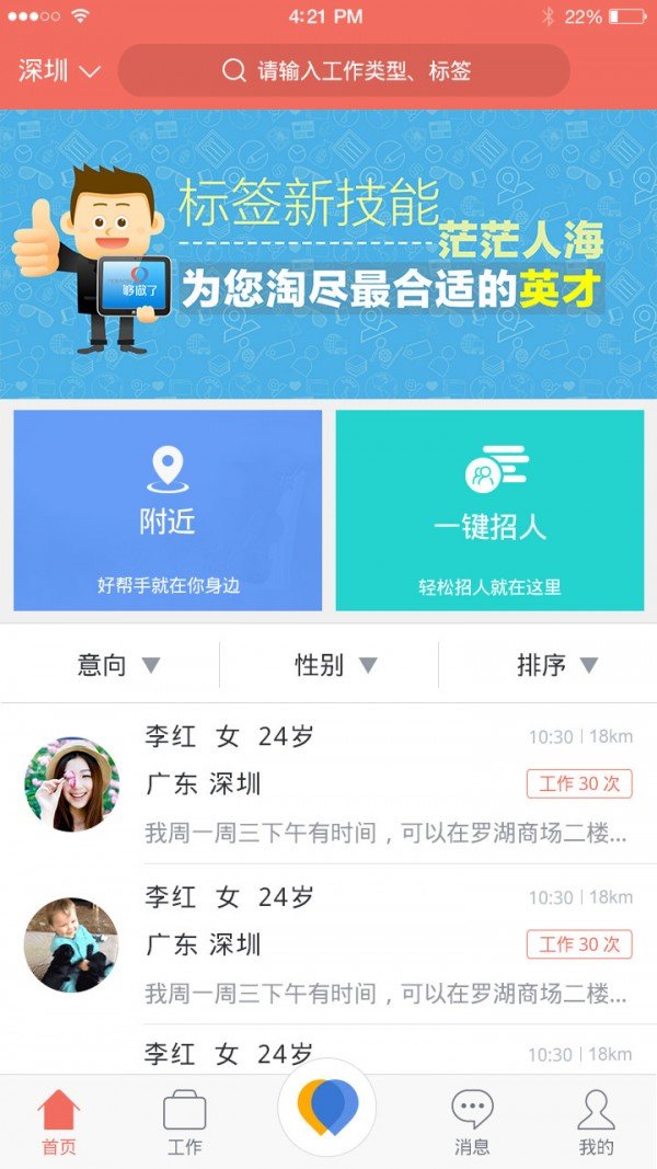 相比传统招聘方式,这个平台能显著降低企业的人力成本和时间投入,通过自动化流程和智能分析,提高人才匹配的成功率和效率。对于员工而言,可以灵活安排工作时间,轻松找到心仪岗位,并获得平台的全方位保障,提升工作满意度和安全感。平台还提供实时数据监控和报告功能,帮助企业优化资源配置和决策制定,同时通过多维度支持,如校园招聘和兼职管理,适应不同规模组织的需求。它的可靠性和易用性让团队协作更紧密,整体运营效率得到明显提升。
