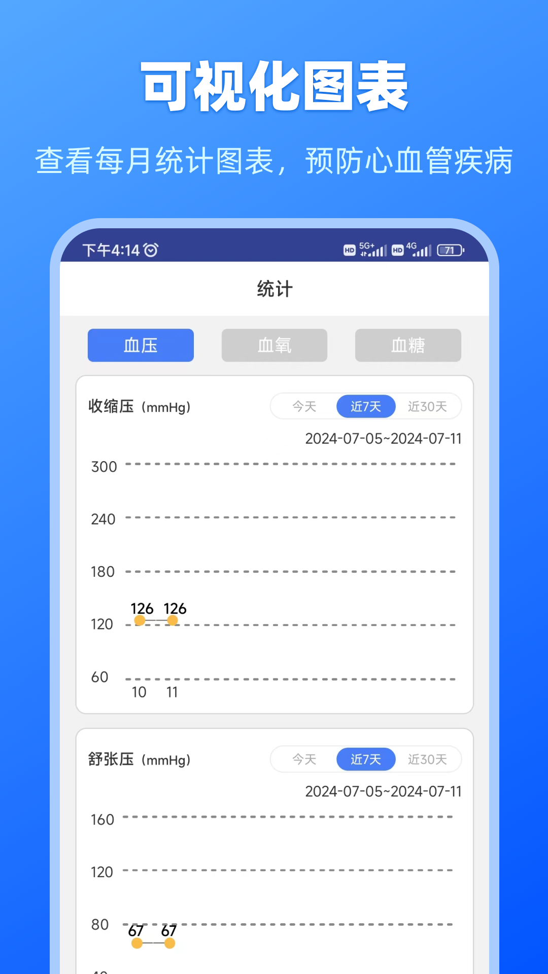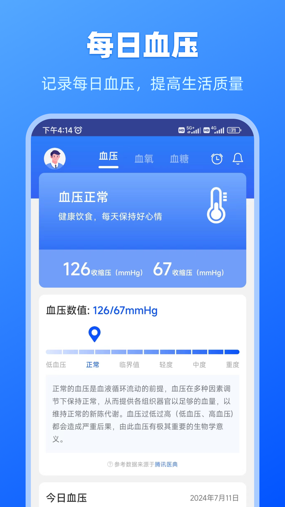 健康数据宝是一款专注于记录和管理血压、血氧、血糖等健康指标的手机助手,让你在追求健康生活的道路上有个得力伙伴。这个工具能贴心地保存每一天的测量数值,通过直观的图表展示变化趋势,帮助你及时了解身体状况,避免潜在问题。设计初衷是让健康管理融入日常,不放过每一个重要细节,为你的健康保驾护航,同时强调它仅用于信息教育,不能替代专业医疗设备。