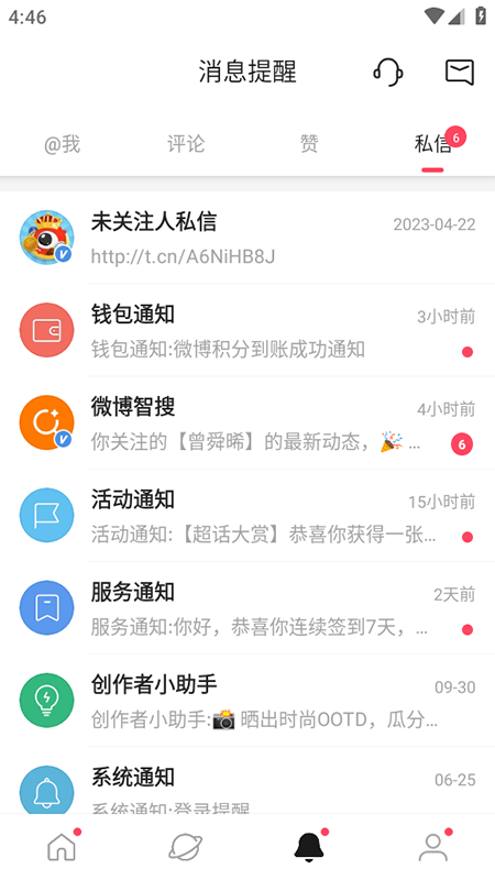 6、实时推送@我的、@我的评论、点赞、私信等通知。