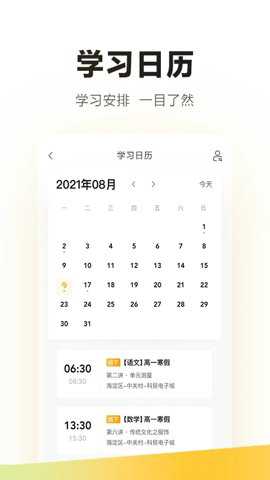 1、学家云的学习日历功能可以帮助用户一键查看每天的学习安排,让学习安排一目了然。