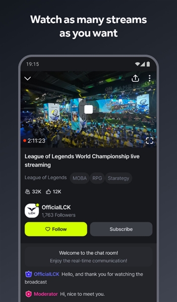 SOOP Global中文版支持高清无卡顿的直播观看,并具备实时翻译功能,方便跨语言交流,作为韩国主流直播平台之一,SOOP Global拥有部分电竞赛事的独家直播权,为用户提供丰富的观赛体验!