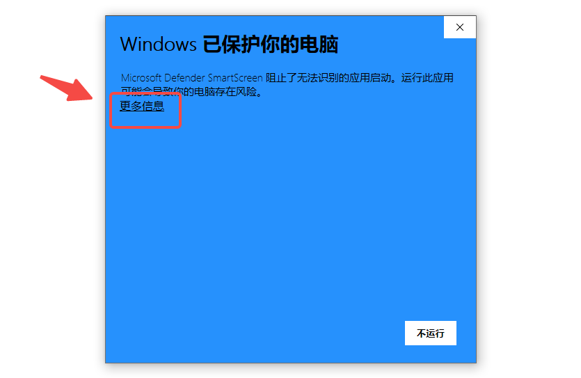 注意!软件本身没有问题,但小编实测发现部分系统(Windows10以上)用户在双击.exe安装文件后,可能会遇到下图所示的Windows安全中心弹窗提示: