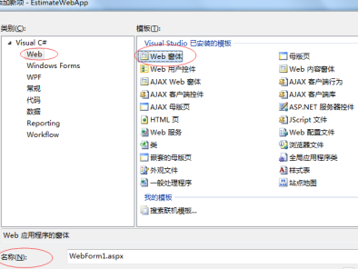 点击"新建项",出来新的对话框,如下图。你选择"Web 窗体"就可以增加页面。在名称那边你重新命名一下,最好要用你该页面实现的主要功能来命名,这样才能增加程序的可读性。如下图2 。