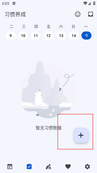 1、点击首页右上角「+」号,快速创建首个打卡目标;
