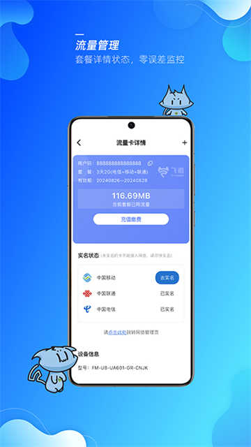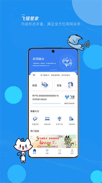 飞猫管家App是飞猫智联官方推出的旗舰级移动设备管理工具,深度适配4G/5G无线上网终端,集实名认证、远程管控、流量运营、智能商城与生活服务于一体。它不仅支持飞猫全系设备,更兼容华为、中兴、OPPO、华正易尚等主流品牌多款移动WiFi硬件——只需手机蓝牙或Wi-Fi直连,即可远程重启设备、切换网络模式、修改SSID与密码、查看实时信号强度与连接终端数,彻底告别插线调试与反复拔插的繁琐操作。内置极速流量充值通道,支持话费//支付宝秒充,余额与剩余有效期一目了然;专属精品商城持续上新轻巧便携的随身WiFi设备,特别适合高频差旅、移动办公、户外直播及学生群体——笔记本一开,热点即连,真正实现走到哪,连到哪”。