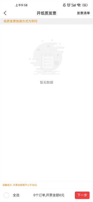 3、选择【开纸质发票】,填写收件地址与纳税人信息,快递包邮送达;也可选择【开电子发票】,即时发送至邮箱,报销更高效。