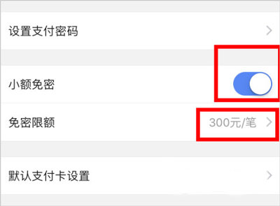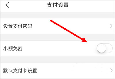 4、然后在支付设置页面,用手指滑动小额免密后面的按钮将其打开。
