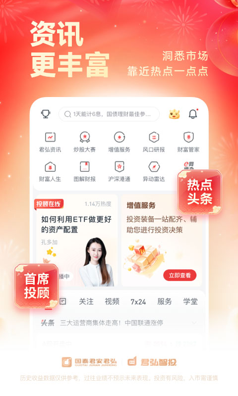 12、在线投顾直连您的专属服务人员,时刻响应您的每一个需求。我们服务,您,任性!