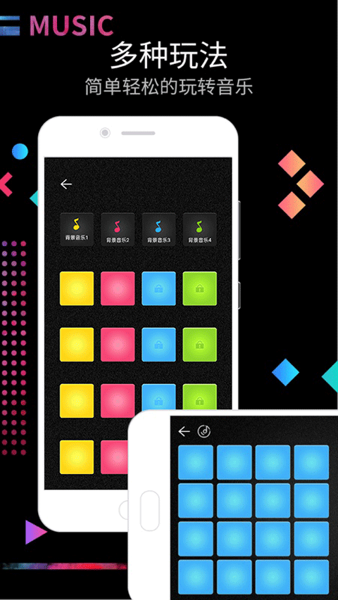 dj电音节奏大师app是一款专为dj音乐者研发的多功能音乐制作软件,又叫打击垫,集打击垫,电鼓垫,电音垫,节拍器等诸多功能于一体,给喜欢玩dj音乐的用户提供了一个平台,让你可以在这里编制出你喜欢的乐曲,给你不一样的魔力混音音效,带你玩转电音节奏。同时软件还提供了多种节奏,魔力混音音效,让用户可以自由弹奏美妙的音乐,在这里你只需手指轻轻点击彩色键盘,即可敲出你喜欢的dj电音节奏了。
