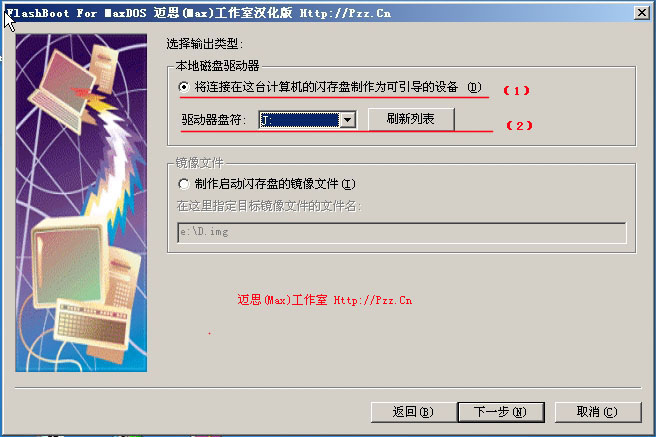 然后在下图中选择您的U盘的盘符,如果未找到,请点击“刷新列表”