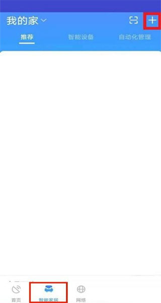 1、打开软件,在下面的菜单栏里面找到智能家居,点击进入智能家居标签页;