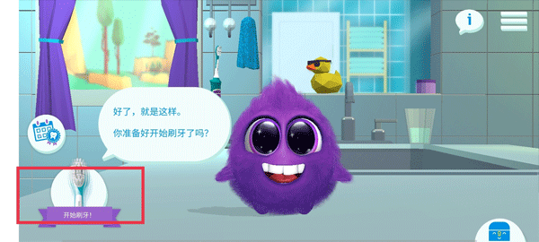 3、这时在这个区域中出现了一个蛋,长按这个蛋就会孵出牙宝,它还会获得一个好看的牙刷作为礼物,开始和宝宝一起刷牙。