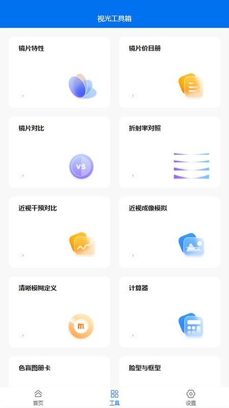 5、进入视光工具箱页面,可看到诸多实用工具,并能直接点击使用;