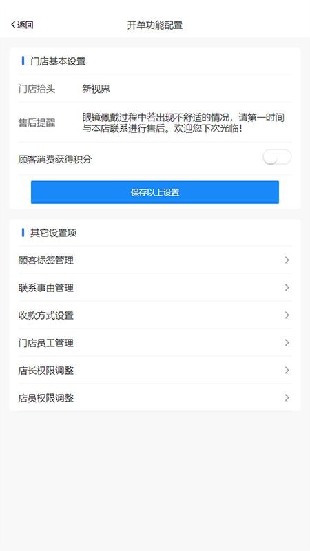 4、在开单功能配置页面,就能自定义设置门店信息和保存,便于开单;