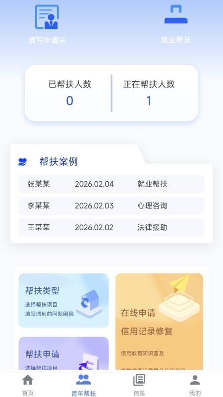 4、阅览自己的帮扶信息,知道所有帮扶详情和求职信息,便于体验;