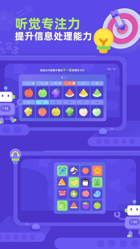 专注力启蒙app让孩子可以进行各种趣味的训练模式,这样就可以参与各种专注力训练了,以后可以随时通过软件进行训练,无需任何复杂的操作流程,只要掌握规则以后,就可以训练,在训练的过程中就可以不断提升孩子的学习专注力,为孩子以后的专注力学习提供更多帮助!