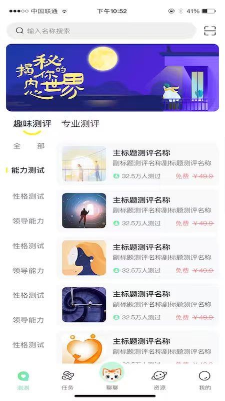 诸多的专业测评服务,可以对用户的心理状态进行专业性的测评分析,获取专业的测评结果。