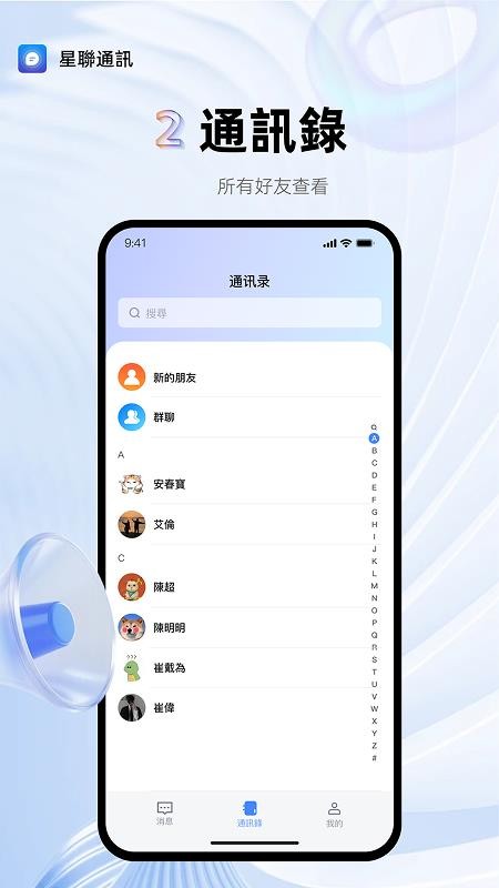 清晰直观的通讯录,所有联系人和群聊均可一览无余,便于查找和互动;